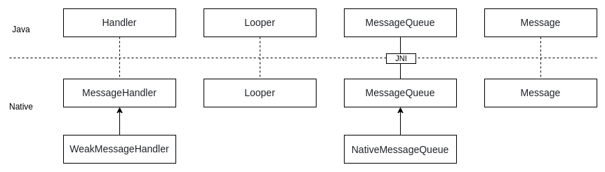 在 Android 消息机制 -- Handler 的 Java 实现 中分析了 Handler 消息处理机制在 Java 层的实现机制,其中 MessageQueue 类作为连接 Java 层和 Native 层的纽带